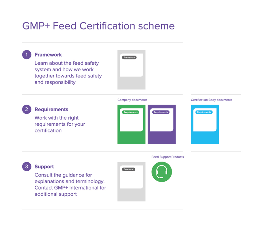 The GMP+ Feed Certification scheme ensures the same level of feed safety assurance worldwide. The requirements are objective, science-based and practical. The international accepted standards and requirements for feed safety assurance like GMP, HACCP, control measure for identified risks, ISO quality management requirements, traceability and corrective measures as described by EU legislation are leading. On the other hand, the GMP+ Feed Certification scheme ensures that companies can work responsible based on market initiatives.
