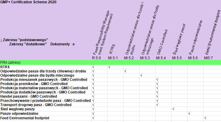 Niniejszy dokument zawiera informacje o zakresach certyfikacji, która jest przyznawana firmie po pozytywnym audycie. Jest to część procesu certyfikacji GMP+.