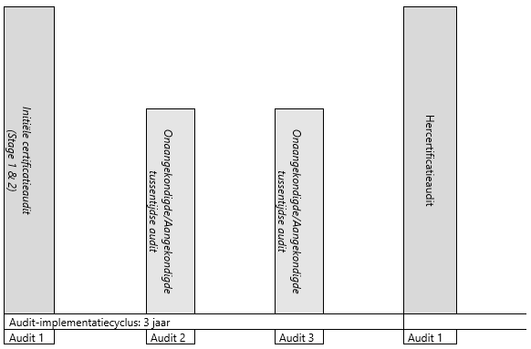 | Initiële certificatieaudit / hercertificatieaudit / (on)aangekondigde tussentijdse audit | |||